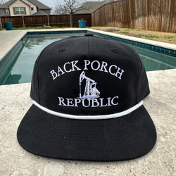 The Back Porch Republic Oil Rig Rope Hat is made for early mornings, long days, and everything in between. Featuring bold embroidery and classic designs, these hats bring together oilfield grit and laid-back back porch living.